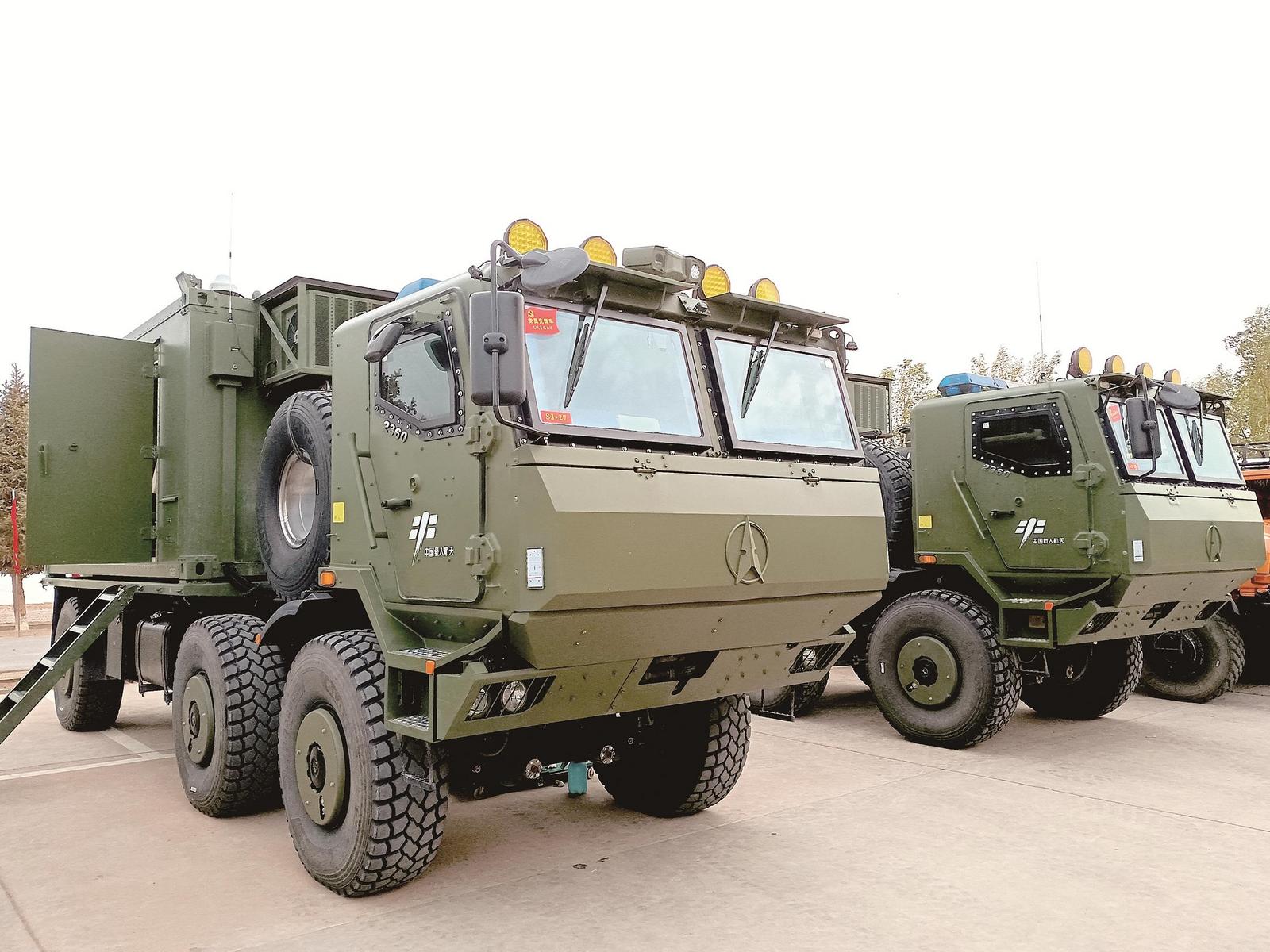 此次護航神舟二十一號飛船發射任務的北奔重型高機動通用戰術車,為雙前橋全時全驅越野車,采用高機動越野底盤,具有高承載性、高機動性、高防護性和高信息化水平等特點。