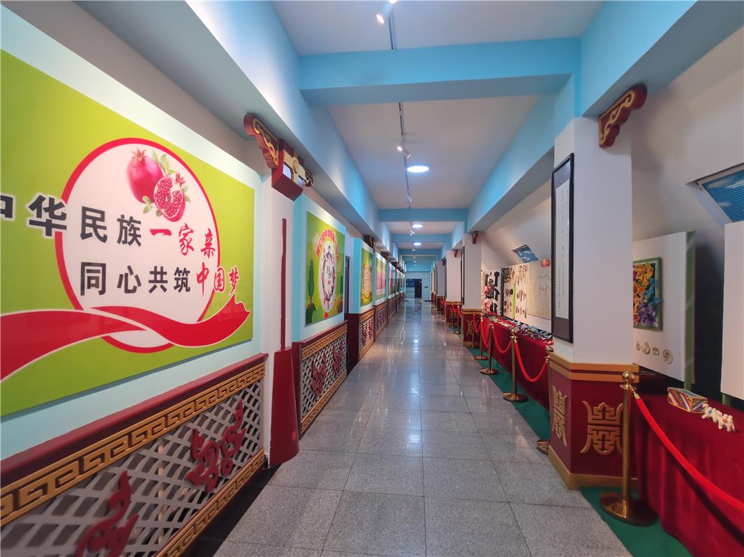 長廊以“守護匠心、凝聚民心”為核心主題,通過實物陳列、技藝展演、互動體驗等多種形式,集中展示了剪紙、編織、油畫、木雕、民族服飾等傳統手工藝品。“這里不僅是民族文化的展示窗,更是連接不同民族情感的連心橋。”呼倫小學校長賈秋霞介紹,長廊的不少作品都出自學生之手,讓參觀者在領略手工藝術之美的同時,更加深入地了解中華優秀傳統文化。