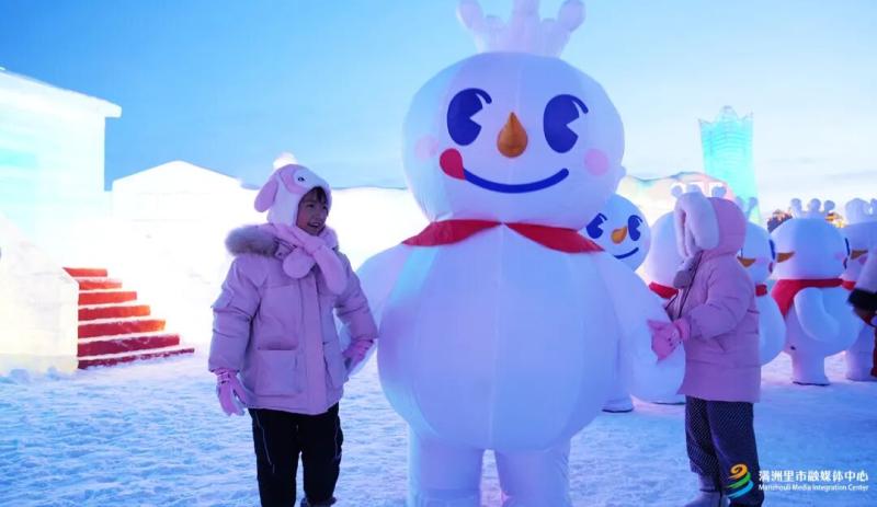 除了有”滿洲里站“車站場景、”稱心如意“等趣味滿滿的互動景觀,主題樂園內的大型主題冰雕、雪雕更是看點十足。15米高的“冰雪絲路”主冰雕藝術性詮釋了中俄蒙文化交融與合作共贏,盡顯高端大氣。主舞臺“冰雪同夢”雪雕將中俄蒙三國特色建筑與冰雪元素巧妙融合,象征著中俄蒙三國人民凝聚力量、共赴美好的愿景。冰火炬佇立在冰雪園之中,寓意著在滿洲里這片紅色要津之地的紅色精神如炬長明,同時照亮著三國交流發展的嶄新征程。