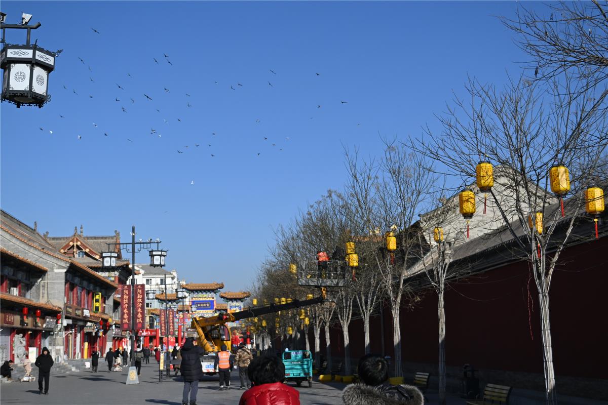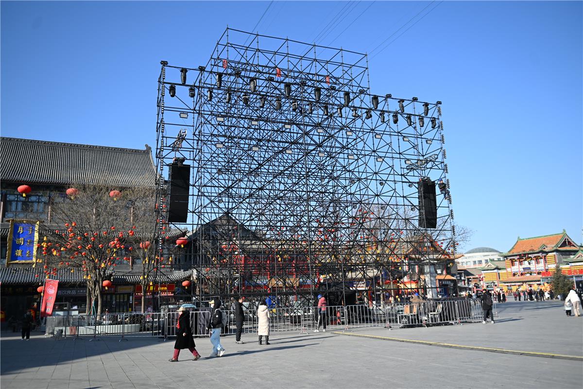 12月29日,記者在呼和浩特市玉泉區塞上老街看到,高約18米的威亞架已搭建完畢。距離12月31日跨年夜僅剩2天,塞上老街跨年夜活動籌備工作已進入沖刺階段。