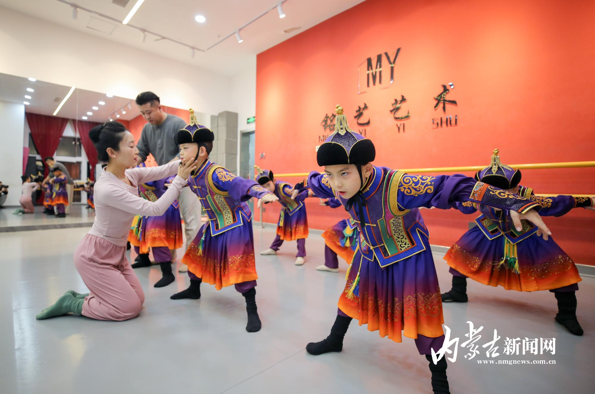“踮腳、轉(zhuǎn)身、柔臂,注意手臂的弧度,要像草原上舒展的河流……”12月28日,在呼和浩特銘藝藝術(shù)舞蹈中心的教室內(nèi),蒙古族舞蹈傳承人李磊帶著一群小男孩練習(xí)基礎(chǔ)動作,孩子們的裙擺隨著動作飛揚,稚嫩的臉龐上滿是專注。