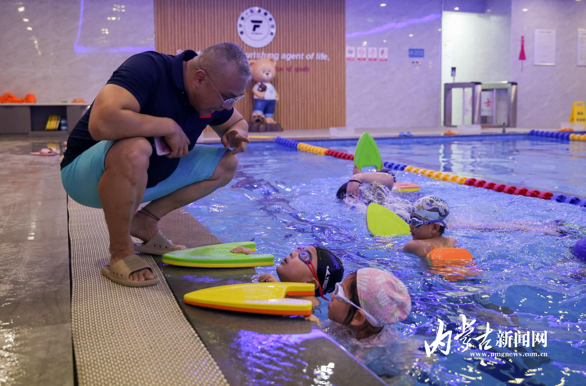 12月28日,在內(nèi)蒙古嘉睦游泳俱樂部內(nèi),泳池邊響起清脆的哨聲,教練嘉睦欽高聲叮囑:“蹬腿要發(fā)力,注意身體與水面保持平行……”話音未落,他快步走到池邊,彎腰糾正每個孩子的腿部動作,神情專注。