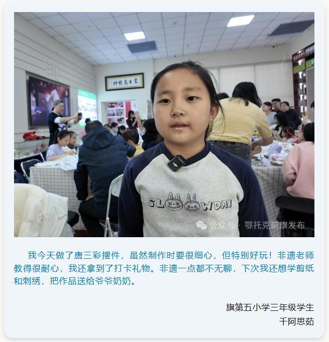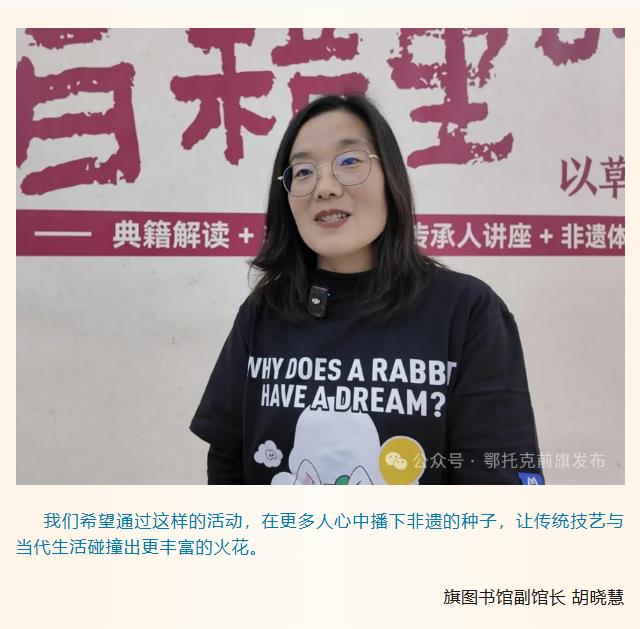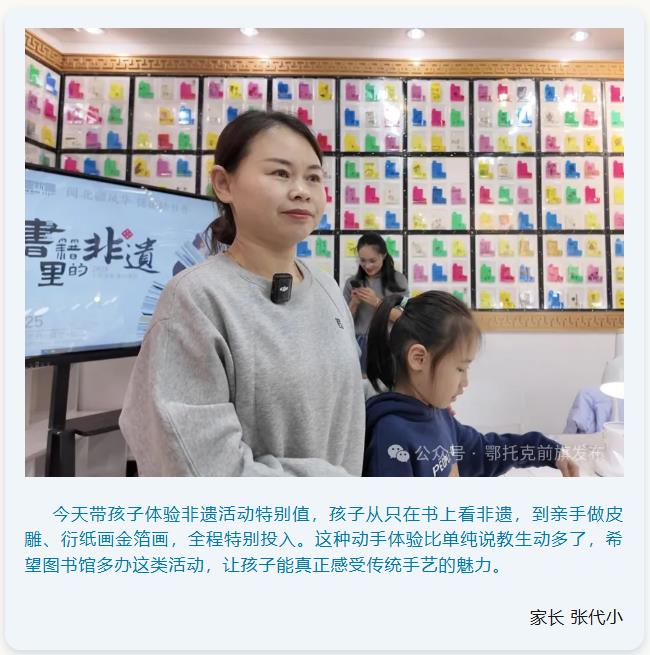 12月27日,由鄂托克前旗文化和旅游局主辦、旗圖書館承辦的“古藝新繹?手作非遺——2025年收官集合體驗”活動在圖書館全天開展,活動以展覽、演繹、手作體驗等多元形式,搭建起公眾與傳統技藝的溝通橋梁,讓千年非遺在當代生活中煥發新生。