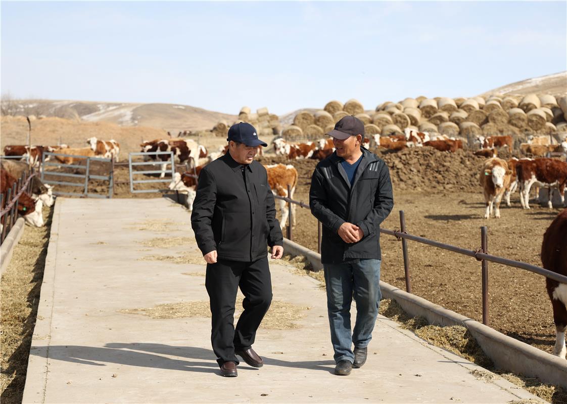 易潤來接過話茬:“廷書記的話說到我心坎上了!這些年按您教的方法搞科學養殖,牛的品質越來越好,收入也翻了番。不過現在牛的頭數偏多,今年打算壓減數量,走精養少養的路子。”兩位老友的對話間,一幅“生態優、產業興、牧民富”的現代化畜牧業圖景徐徐展開。