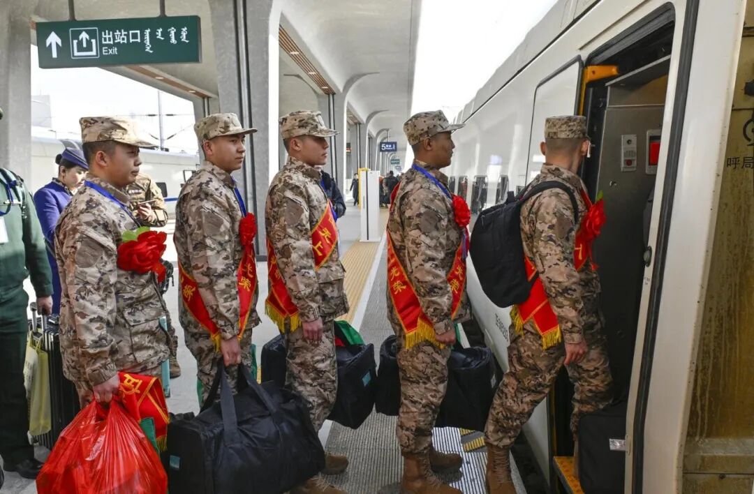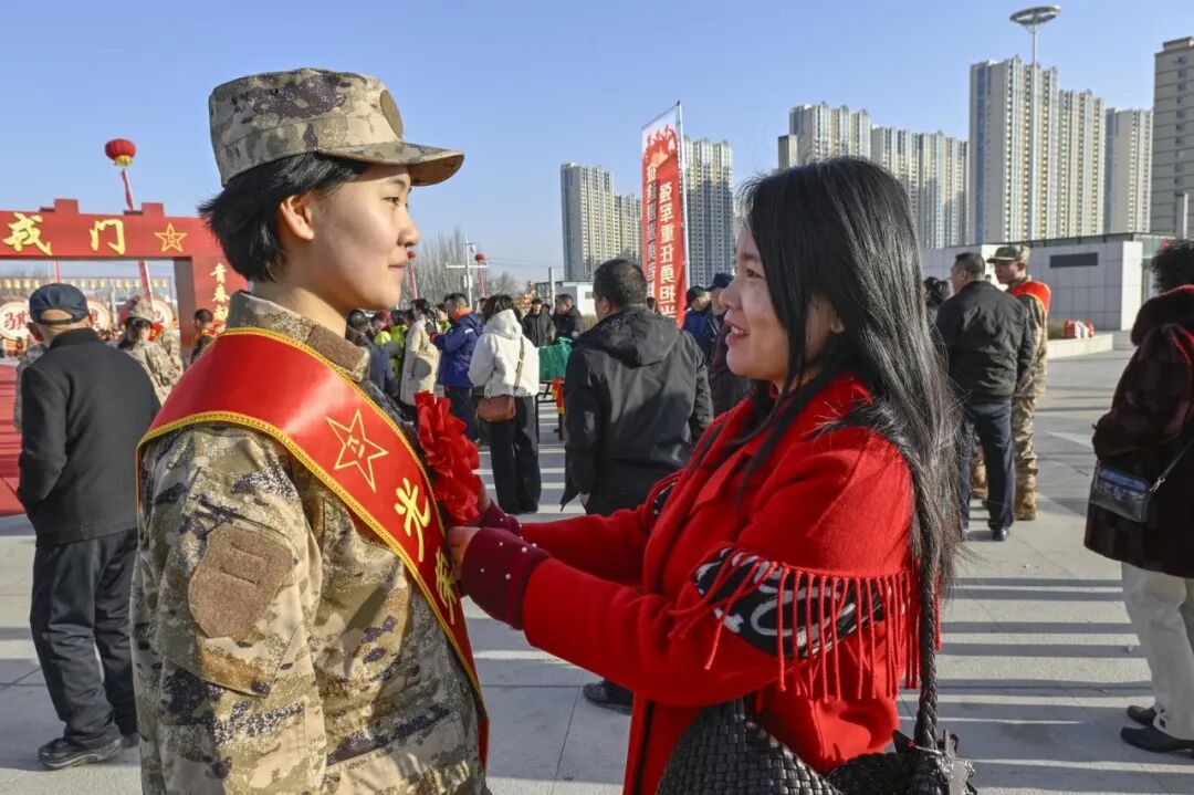 當日上午8時整,伴隨著激昂的軍歌旋律,入伍新兵在巴彥淖爾高鐵站集結列隊,他們肩披綬帶、胸戴紅花,軍容嚴整、身姿挺拔,臉上洋溢著青春的朝氣和對軍營生活的向往。